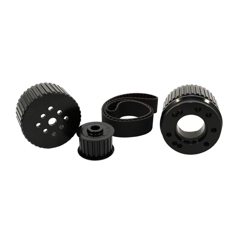 The cogged 1 1/2" wide "Gilmer" style belt prevents slippage. Water pump and crank pulleys are a 1:1 ratio. Must be used with the factory alternator position, alternator pulley has outside lips to help keep belt aligned. Crank pulley has V-belt groove that can be used to run power steering. Will not work with A/C equipped vehicles. Works with mechanical water pumps only (will not work with electric water pumps).