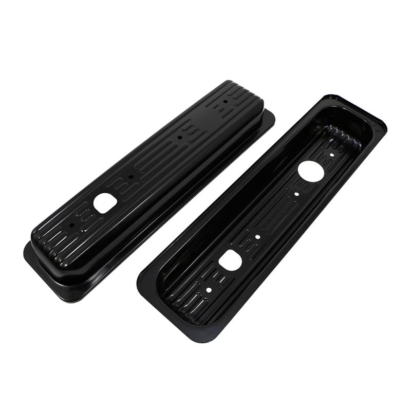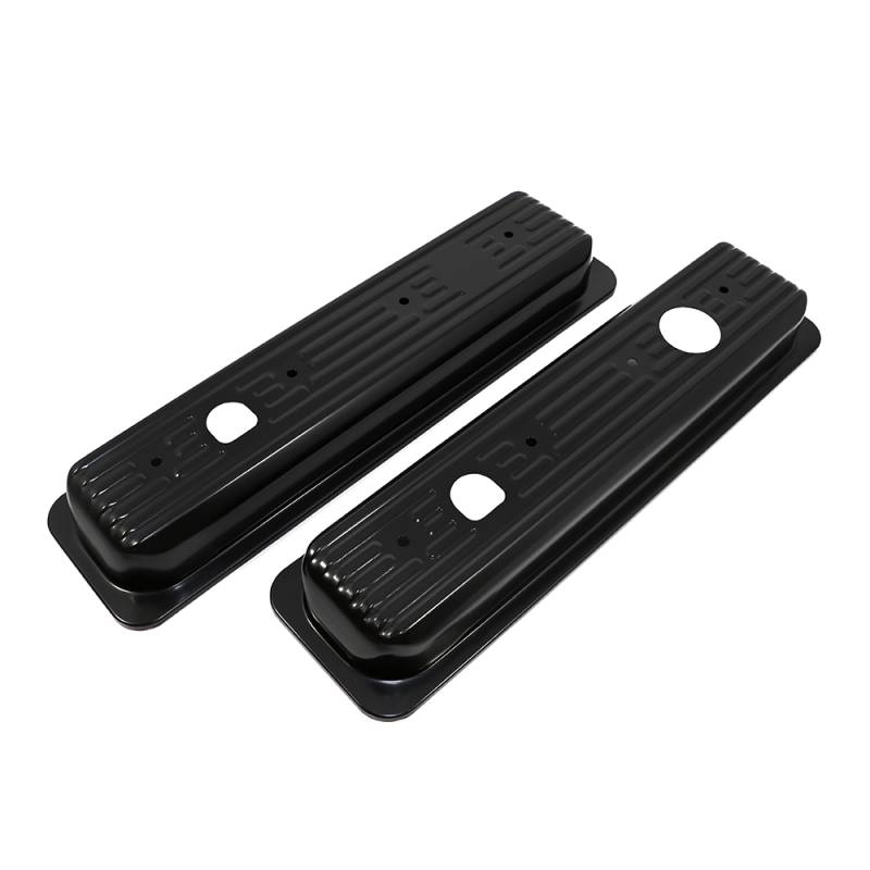 This is a new set of black steel dress up caps for Chevy/GMC center bolt style factory covers. These caps fit 1987-2000 V8 5.0 and 5.7L engines and will go on top of the stock OEM factory covers. Can use your existing valve cover bolts.