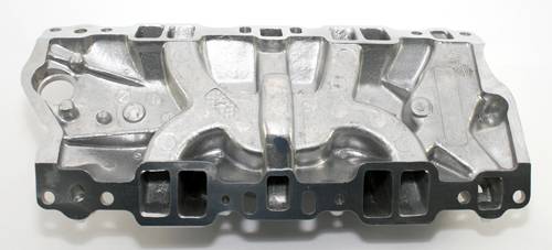 Intake works with 283-400 small blocks up to 1995. Includes special adapter bushings for the middle holes on the '87 to '95 heads. Does not fit the newer Vortec heads. Can be used with either spread bore or square bore style carbs. Provides standard bosses and tapped holes for street accessories such as A/C and alternator brackets. Non EGR.