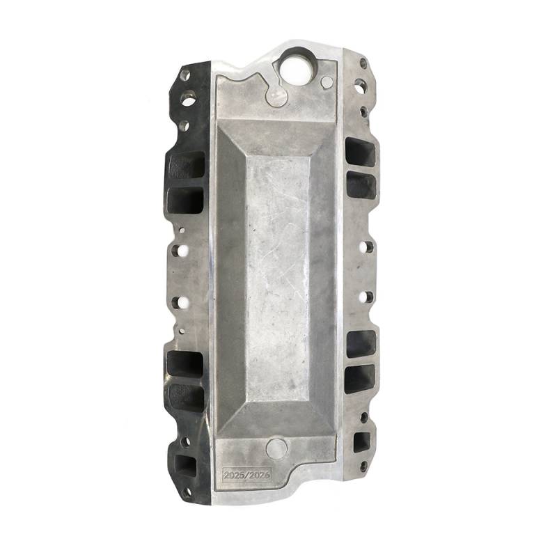 Intake works with 283-400 small blocks up to 1995. Includes special adapter bushings for the middle holes on the '87 to '95 heads. Does not fit the newer Vortec heads. For use with square bore style carbs. Provides standard bosses and tapped holes for street accessories such as A/C and alternator brackets. No provision for manual choke or exhaust crossover and are not EGR equipped.