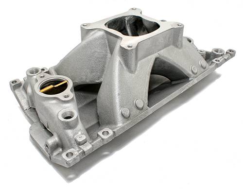 This is a new high rise single plane intake for small block Chevys with Vortec heads. Big power for mid to upper RPM ranges! Ideal for high performance and race applications - big savings when you dont need to pay for the name! These intakes are produced from steel molds to reduce core shift, have all the major features found on the expensive ones such as 4 corner water outlets and nitrous bosses, and the best part - the price! Intake works with small blocks with 96+ Vortec heads. For use with square bore style carbs. Provides standard bosses and tapped holes for street accessories such as A/C and alternator brackets. No provision for manual choke or exhaust crossover. Not EGR equipped.