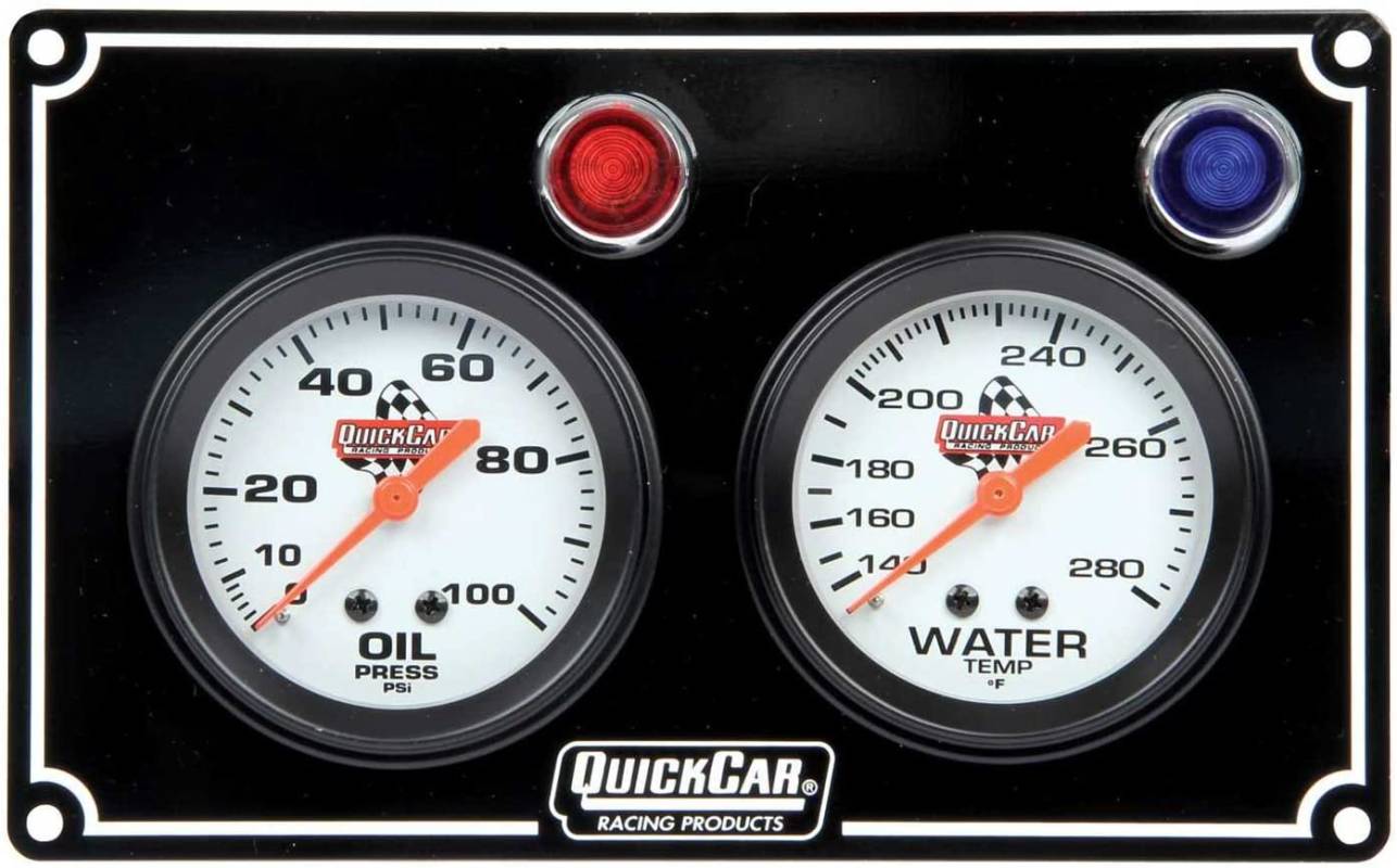 This is for a new QuickCar 2 gauge panel. Black Panel has silver face gauge's oil pressure, water temperature, warning lights and sending units.
