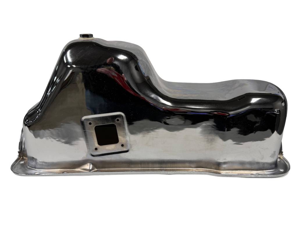 Chrome oil pan, fits 1981-1987 small block Ford 351W engines. OEM style pan for passenger cars, 2WD trucks, and vans. Stock 5 qt. pan capacity