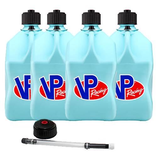 VP Racing 4-Pack Square Fuel Jugs with extra Cap and Filler Hose -SKY BLUE