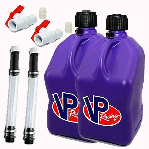 2 VP Racing Square Fuel Jugs with 2 Hoses and Ball Valves - PURPLE